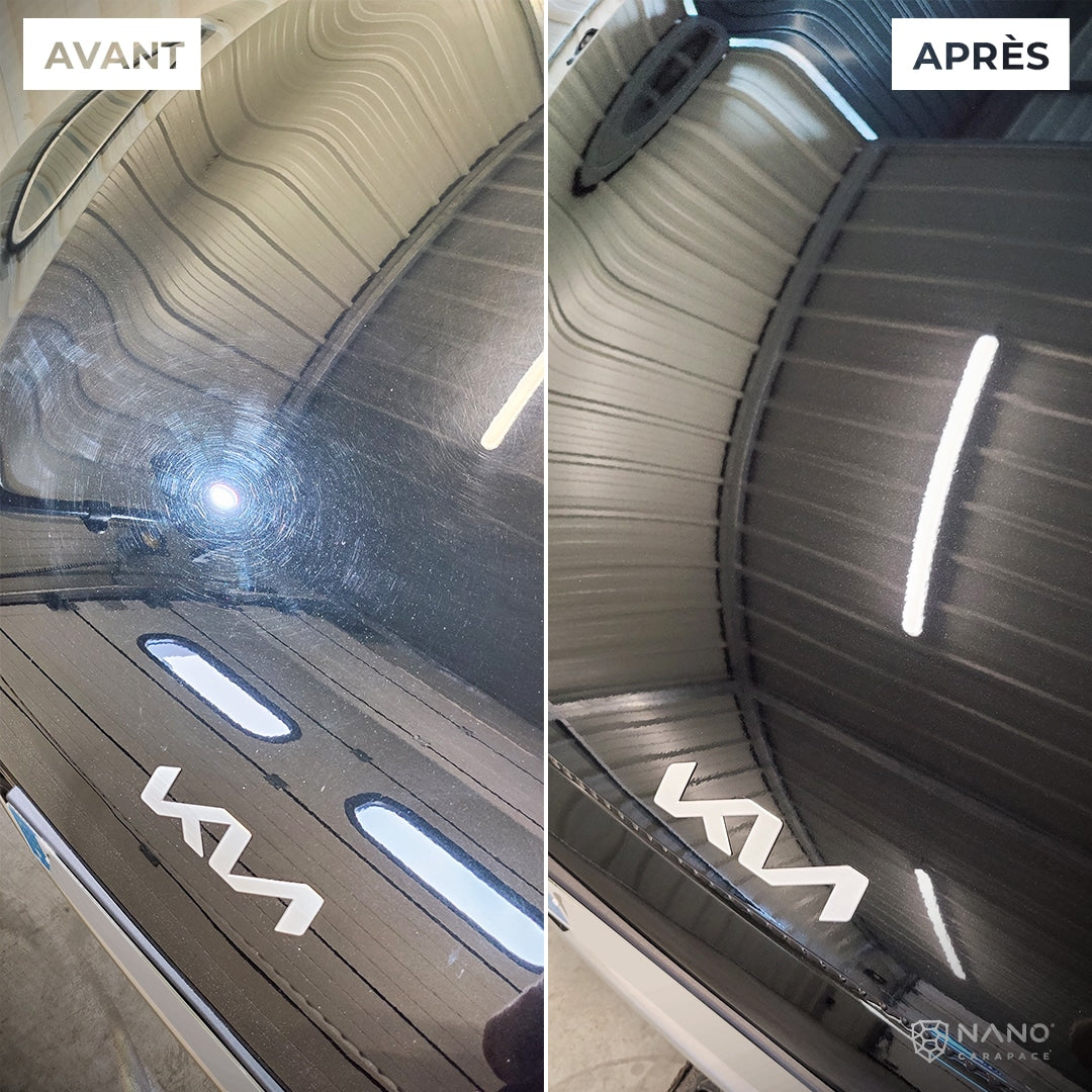 Entre 3 et 6 mois, selon l’entretien et les conditions d’utilisation du véhicule. Une application régulière garantit un effet miroir constant.